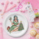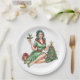 Add festive retro charm to your holiday decorations with this Vintage Christmas Pin-Up Paer Plate design—perfect for printing on party balloons or coordinating with matching table décor. Featuring a glamorous 1950s-style pin-up girl in a green polka-dot dress, classic holly, a decorated Christmas tree, and nostalgic mid-century colors, this design adds the perfect touch of Christmas cheer.