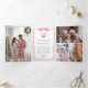 Retro Christmas Pink Ribbon Family Photo Gallery Tri-Fold Holiday Card