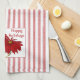 Retro Christmas Poinsettia red and white stripe Tea Towel
