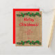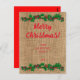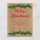 Retro Christmas red typography burlap Postcard. Personalised text.