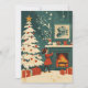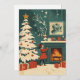 Retro Christmas Scene Fireplace Kid Holiday Card