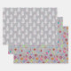 Retro Christmas Set 1 Grey Christmas wrapping paper sheets have three different hand painted patterns. You have retro Christmas trees, retro Christmas ornaments, and retro Christmas gifts all with matching grey backgrounds. You can make the patterns on the wrapping paper sheet larger or smaller. These designs are a cute way to brighten up your holiday gifts under your Christmas tree this year.