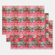 This retro vintage Christmas wrapping paper set showcases captivating scenes on a vibrant snowy hot pink background. The focal point is a large and intricately designed Christmas floral arrangement, featuring classic holiday blooms like poinsettias, holly leaves, and perhaps some mistletoe. The flowers burst forth in a rich and festive colour palette, adding warmth to the wintry backdrop. Gracefully integrated into the design is the text, elegantly written in a vintage font: "Silent Night, Holy Night" and "All is calm, All is bright".
