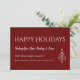 Classic Happy Holidays greeting card, with a retro Christmas tree design on a red background. With customizable white lettering, you add your own text. This card is great for sending love and happy wishes this holiday season.
