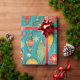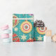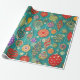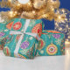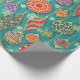 Retro Christmas Tree Ornaments on Aqua Gift Wrapping Paper
