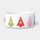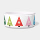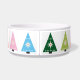 A colourful mid-century modern style design with retro Christmas trees. Personalise with your Pet's name for a fun Christmas pet gift. Colours include; green, red, pink, and light blue.
