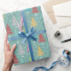 Retro Christmas Trees Teal Christmas Wrapping Paper