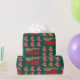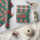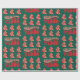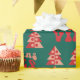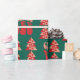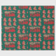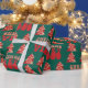 Fun and festive retro vibes wrapping paper with red, green and gold minimalist trees.