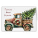 On the front of this cute Holiday greeting card, a retro style farm truck is decorated with a Christmas wreath and carries home a freshly cut evergreen tree. A black and white Border Collie dog peeks out of the back of the truck. Red text at one side says "From our house to yours...", and the sentiment is continued inside. All the text, front and inside, may be easily customised by you to say anything you'd like.