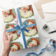 Retro Chubby Santa Wreath Holiday Gift Wrapping Paper