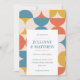 Step into a world of nostalgia and celebrate love in a truly groovy style with our Seventies Retro Vintage Wedding Paper Invitation! This invitation features a captivating pattern inspired by the vibrant spirit of the 1970s and 1960s combining half circles and ogee scallops. The pattern is elegantly crafted in a palette of blue, orange, and yellow, set against a classic ecru background, creating a perfect balance between nostalgia and elegance.