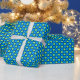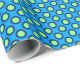 Large dots with a contrasting border, based on a classic, Mid-Century Modern upholstery pattern - pale green dots bordered in dark navy blue on a rich, cerulean blue background