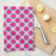 Retro dots with a contrasting border, based on a classic, Mid-Century Modern upholstery pattern - deep fuchsia pink dots bordered in silver grey / grey on a light ice pink background