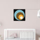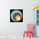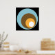 A retro seventies style circles design in black, blue, brown, orange and white.