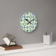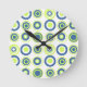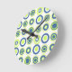 Retro Circles Lime Pea Green Teal On White Round Clock