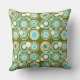 Retro Circles Party Dusty Olive Turquoise Cream Cushion