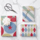 This gift wrap gives off a retro vintage vibe with its muted colours and classic shapes. A perfectly versatile paper for birthdays, baby showers, just because, and holidays. Three designs are included with purchase, stripes, polka-dots, and harlequin patterns.