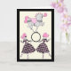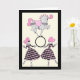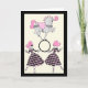 A talented grey circus pony balances on a hoop held by pink haired harlequin girls. Lovely pink, black and cream colour scheme. Personalise the inside with text for that special person.