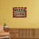 Freak show poster sign featuring retro circus freak show with vintage circus tent red stripes and marquee imaged letter lights. Great décor piece for a bar or Halloween party décor.