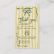 A playful retro thank-you card designed to brighten every order you send out. The wavy citrus yellow stripes, hand-drawn green borders, and sweet little bow give it a nostalgic shop-owner charm that feels warm and genuine. The front includes space for a short message, a discount code, and your socials so customers can easily follow and tag you. The back features your QR code and contact info, making it simple for shoppers to find you again. A cute, memorable insert that adds personality to your packaging and encourages repeat business.