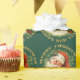 This festive Christmas gift wrap features a wonderful vintage portrait of Santa Claus, complete with his traditional red and white stocking cap and bushy white beard. He wears a sprig of holly with a red berry. The portrait is surrounded by a wreath of pine needles on a forest green background. Half circle glittery gold text at the top says Merry Christmas, and at the bottom Happy New Year, forming a circle around the Santa portrait. *Please note - the image is printed and does not contain actual glitter.*