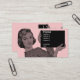 Business cards featuring a vintage 1950s illustration of a woman holding a clipboard. Customise them with your own background colour and text. Retro cool!