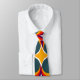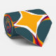 This necktie has a mid-century modern design of concentric circles in 1970s colours with stars between each group.