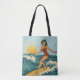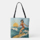 Retro Coastal Pin-Up Surfer Art | Blue Surf Beach Tote Bag