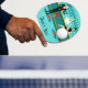 Every hour is happy hour with this Customisable Retro Cocktail Lounge Ping Pong Paddle. The mid century modern design features a vibrant, 1960's style, minimalist, cartoon drawing of a classy, cocktail bar. Against the backdrop of an aqua wall, we can see rows of drink glasses. At least we can see the teal silhouettes of drink glasses. Judging from the shapes of the stemware, this bar is well equipped to wet your whistle, whatever your drink preference. A most competent and personable bartender is manning the teal bar with yellow accents. The young barkeep is wearing a pristine, white shirt with black bow tie. His fresh-faced good looks, blonde hair and black hipster glasses give us every reason to believe that he either spends his days as a struggling actor or a superhero. In one hand, the handsome mixologist is handing a martini to a customer on the opposite side of the bar. The waiting customer is a broad-shouldered gentleman in a black suit and red tie. He's the sort of fellow who is described as tall, dark, and handsome even when it's still hours until closing time. There seems to be a red and chrome bar stool with Mr. Debonair's name on it. Yet, not to be presumptuous, he asks the question, "Pardon me. Is this seat taken?" He is asking the raven haired gal on the neighbouring bar stool. She's a real "girl next door" type, if you happen to live next door to a flawless beauty with a figure that won't quit. She is wearing a black dress and holding a martini in one hand. She's hoping that she and the approaching gentleman have more in common that their drink preference and choice of wardrobe colour. It looks like this evening just got interesting. Cheers to you! Personalise for a one of a time gift.