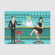 Every hour is happy hour with this Retro Cocktail Lounge Tissue Paper. The mid century modern design features a vibrant, 1960's style, minimalist, cartoon drawing of a classy, cocktail bar. Against the backdrop of an aqua wall, we can see rows of drink glasses. At least we can see the teal silhouettes of drink glasses. Judging from the shapes of the stemware, this bar is well equipped to wet your whistle, whatever your drink preference. A most competent and personable bartender is manning the teal bar with yellow accents. The young barkeep is wearing a pristine, white shirt with black bow tie. His fresh-faced good looks, blonde hair and black hipster glasses give us every reason to believe that he either spends his days as a struggling actor or a superhero. In one hand, the handsome mixologist is handing a martini to a customer on the opposite side of the bar. The waiting customer is a broad-shouldered gentleman in a black suit and red tie. He's the sort of fellow who is described as tall, dark, and handsome even when it's still hours until closing time. There seems to be a red and chrome bar stool with Mr. Debonair's name on it. Yet, not to be presumptuous, he asks the question, "Pardon me. Is this seat taken?" He is asking the raven haired gal on the neighbouring bar stool. She's a real "girl next door" type, if you happen to live next door to a flawless beauty with a figure that won't quit. She is wearing a black dress and holding a martini in one hand. She's hoping that she and the approaching gentleman have more in common that their drink preference and choice of wardrobe colour. It looks like this evening just got interesting. Cheers to you!
