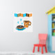 Totally retro design in orange, blue and brown. Shows a cup of coffee and doughnut and above is the word "coffee" in coloured squares