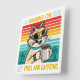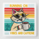 Retro Coffee Cat Vibes – Funny Caffeine Lover Square Wall Clock