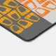 Mid Century Modern shapes on a colour blocked background in oranges and greys