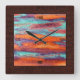 Retro Colour Wood Grain Burlap Border Square Wall Clock