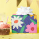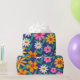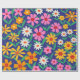 Bring a bold vintage touch to your gifting with this retro boho floral wrapping paper featuring pink, orange, yellow, and white flowers with leafy branches on a deep navy blue background. The colourful 70s-inspired design is perfect for birthdays, holidays, parties, boutique packaging, and anyone who loves groovy floral style with a modern twist.