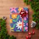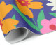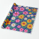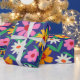 Retro Colourful Boho Flowers on Navy Blue Wrapping Paper