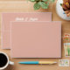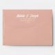 A retro modern hand written bright colourful wedding envelope. Which features bold vintage bride and groom's names in white creamy colour. And personalised return address . On peach colour background. Which suits the whole wedding suite.