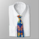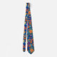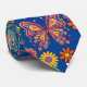 Retro colourful flowers pattern. Blue BG Tie