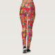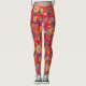 Retro colourful flowers pattern. Red BG Leggings