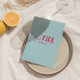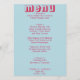 A unique retro mint green modern handwritten wedding dinner menu. Which features chic template design of boho vintage light sky blue background and red magenta text layout. Perfect and matching with the whole suite.