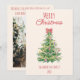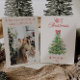 If you are looking for a simple minimalist beautiful and easy editable Christmas card. This one is perfect for you. And as you see the design features a green hand made and drawn Christmas tree and colourful ornaments and a bow, With whimsical red hand written typography of MERRY CHRISTMAS. All inside a greenery hand drawn red berries and green holly leaves frame. And your family name and year in the bottom. And In the back you got a a customisable Christmas greeting paragraph and family photo.