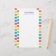 From the desk of stationery with colourful striped borders in retro colours of tomato red, yellow, green, bright teal, and purple personalised with your name in purple. Retro and colourful personalised stationery printed with your name beneath From the desk of.