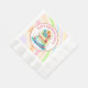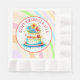 Whimsical floral birthday cake in blue, orange and pink with a retro orange, pink and purple background. Add a name in the personalise area.
