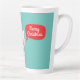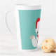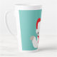 Whimsical white fox with retro red scarf, santa hat and Merry Christmas text bubble on aqua background.