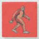 A legendary woodland figure strides through a dense forest of evergreen trees in this striking pop art comic panel. Rendered with bold black outlines and a vibrant palette of forest greens, the design utilises intricate halftone patterns to create depth and a classic vintage print aesthetic. This stone coaster captures the mystery of the wilderness with high-contrast styling and retro artistic flair, making it a unique statement piece for fans of folklore and comic book illustration.