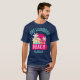 I give wanted to give this a 4 instead of a 5 because these Basic DARK T0shirts run unexpectedly SLIM or Narrow. Which is great if you do not have a potbelly, but I have a paunch. It isn't the shirt's fault that I've got a beer belly. The design and shirt itself is a quality cotton shirt. The color is more of a deep purple, but still a very pretty color. The Basic DARK T-shirts run a bit SLIMMER than the Basic Ts. The neck is a fraction narrower (or seems to be narrower) also. I'm a paunchy middle-aged woman and my neck is 12 inches (31cm) thick and the neckline fell about the same as in the photo of the man, and I had the desire to tug it a bit. So if you're a thick necked man or like loose shirts, be aware these are slimmer shirts. Once I get rid of my lockdown paunch it'll look great. The shirt washed well in cold water with no apparent bleeding. We don't have a dryer, so it hung dry. Did not shrink. Love the colors and the design. The design looks smaller on my shirt than it does on the model on-line. But still, it looks good on the shirt. The printing looks as it does on the model, just the size seems fractionally smaller. Washed garment in cold water, hung dry and design appeared unaffected.