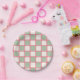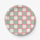Retro Coral and Green Checkers Paper Plate