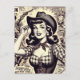 Retro Country Girl Illustration Postcard