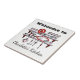 Retro Country Kitchen Theme personalised tile- Retro country style kitchen vintage art design- This vintage artwork is just like going back to Grandma's house. Country kitchen shelf is filled with hanging red and white coffee cups and matching glasses, plates, bowls, serving dishes, pitcher for lemonade and southern sweet iced tea, and kitchen utensils with red handles, even a hanging cookbook full of her delicious, old fashioned recipes. Painted red wooden kitchen shelves complete the homey feel that takes you back to yesteryear. Reads Welcome to at top with personalised name's kitchen at bottom. Whimsical, comforting vintage artwork is simple line drawing in black and white with red added for a special touch. Perfect personalised cooking theme gift design for many holidays, special occasions, and any day of the year you want to remember the good ole days and the warmth of Mum's kitchen from childhood. Ready to be customised- add name or custom text. Unique whimsical gift for cooks, chefs, stay at home moms, housewives, for Mum on Mother's Day or Grandma gift.