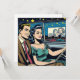Cute pop art retro 1950's couple in a convertible car at a drive-in movie pop art card.